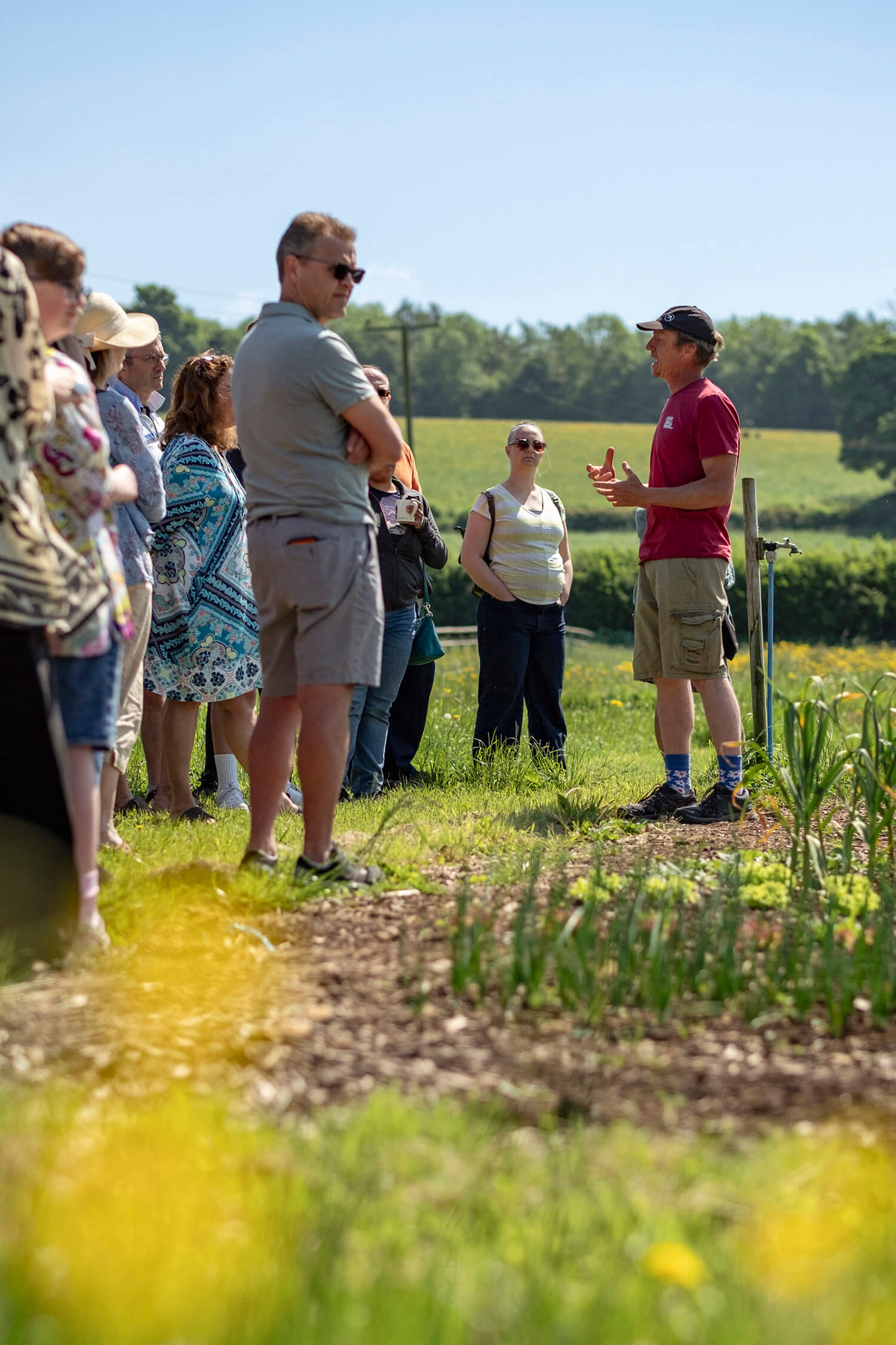 Eric or Tom will guide the tour, and you’ll meet and chat with others who run our various enterprises – perhaps you will meet Max, who’ll talk about how we encourage biodiversity across the farm, or with Matt, who’ll show you how we manage livestock rearing. You’ll visit our nursery, meet our happy herd and plucky flock and get a sense of how we operate day to day.