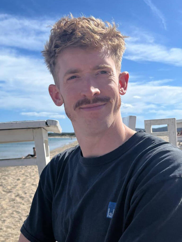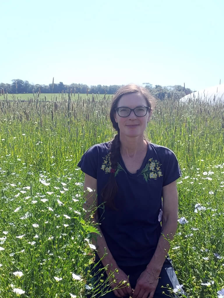 I’m a photographer and graphic designer retraining in regenerative, organic agriculture, working with Good Small Farms in the marketing team. I’m happiest in a field of linseed, which I’ve been growing here at the farm as part of my dissertation project.