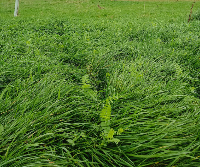 Deliciously nutritious eggs aside, I am excited about the layers’ impact on the pasture, or more precisely their nitrogen rich poop! We move the houses twice a week and give a good rest period before the next pass – about three months this season. The layers are out in one of our poorest fields formerly used for arable cropping, where the topsoil is shallow and fertility and life in the soil is low. Now the grass is now growing back with a deep, green colour, with thicker stems and more prolific growth.