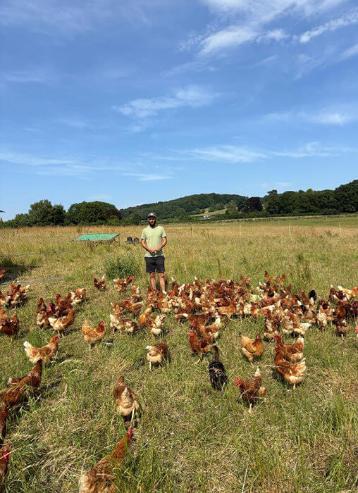 Months of hot, dry weather ensued; the birds enjoyed basking in the sun, making dust baths and having a good groom. However the drought soon led to dry, lignified grass in the pasture and all the yolks became pale. The colour of a yolk is affected by the carotenoids in the hens’ diet; fresh, green grass contains them which in turns the yolk a deep, yellowy orange. Of course, large scale commercial systems used synthetic additives to alter the colour which is obviously not a reflection of a hen reared outside with access to diverse forage! End of rant…