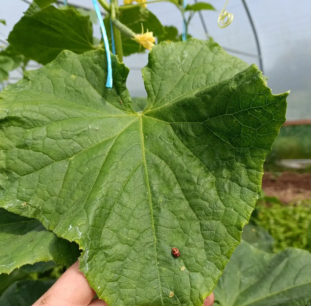 Another beneficial predator-prey cycle that we observed in the polytunnels last year was when the aphids descended on the cucumbers. Within a short space of time we observed lots of spiny little orange and black pupa appearing on the cucumber leaves, out of which emerged ladybirds. In the larval stage, the ladybird children devour copious numbers of aphids, which was very useful for us.