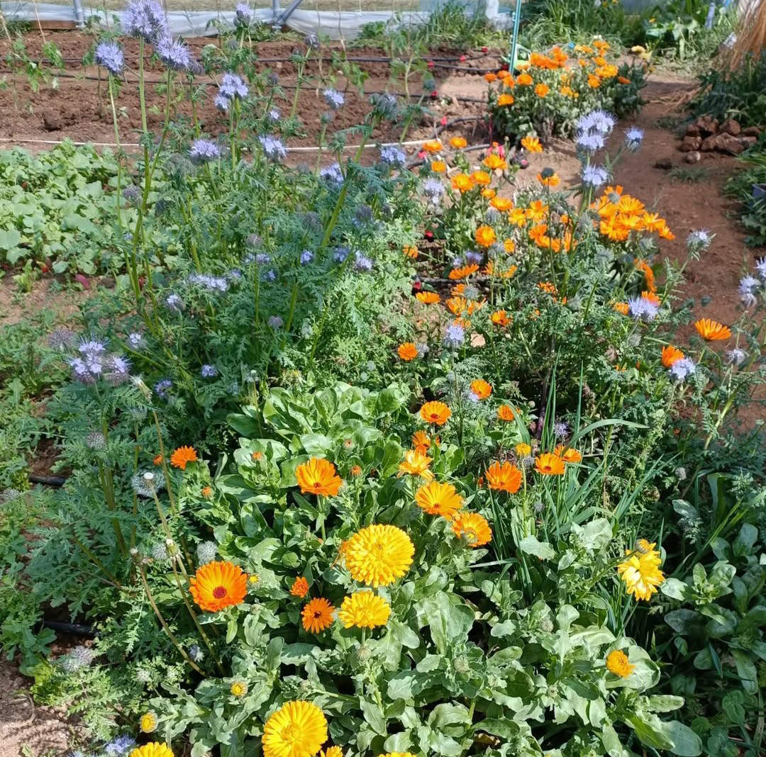 By planting a high diversity of plants for crops and pollinators, creating habitat niches like ponds and beetle banks and looking after the soil we are encouraging as much diversity as we can. This sets the stage for the fascinating and complex relationships in nature to thrive, benefitting the ecosystem in general but also bringing balance to the market garden flora and fauna.