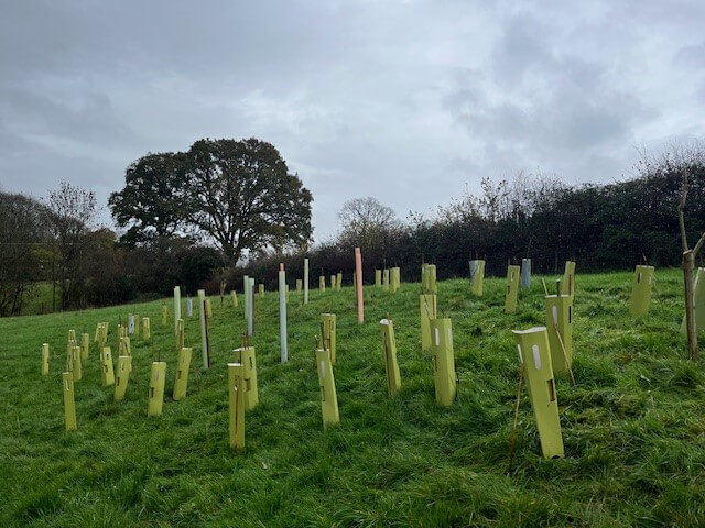 Biodiversity enhancements: Hugh has helped to dig a pond in the market garden that Max is going to be excitedly planting up. Despite the very soggy ground at present, there is only one pond on the farm (that we put in a few years ago) and so a lack of standing water habitat. The market garden’s pond will address that, and in the area that needs that biodiversity to help encourage as wide a range of insects as possible. The liner has gone in and the current downpours will be helping to fill it pretty quickly.
