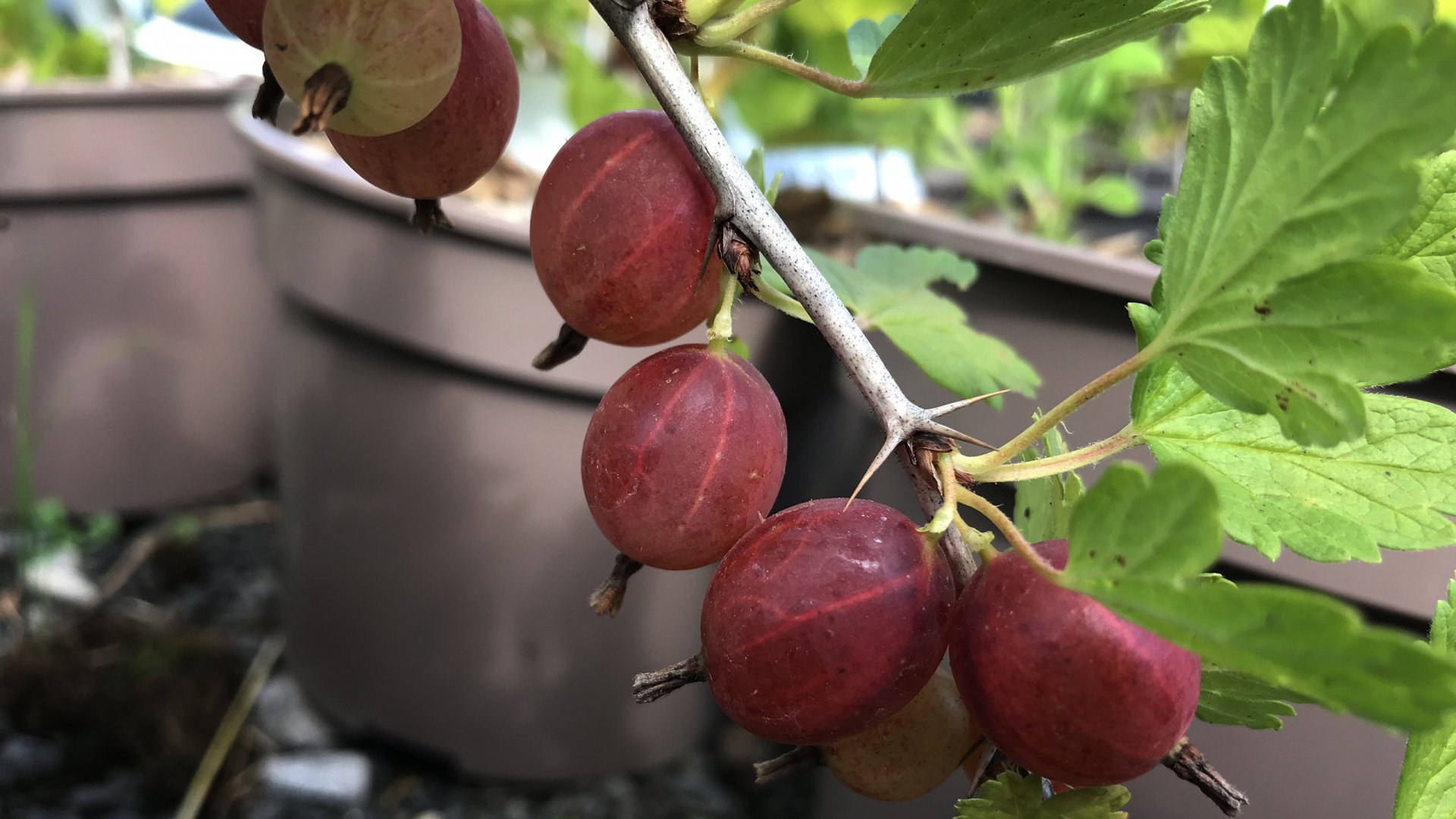 Big, bold and vigorous, a blackcurrant gooseberry combo. Mildew resistant. Spine free.